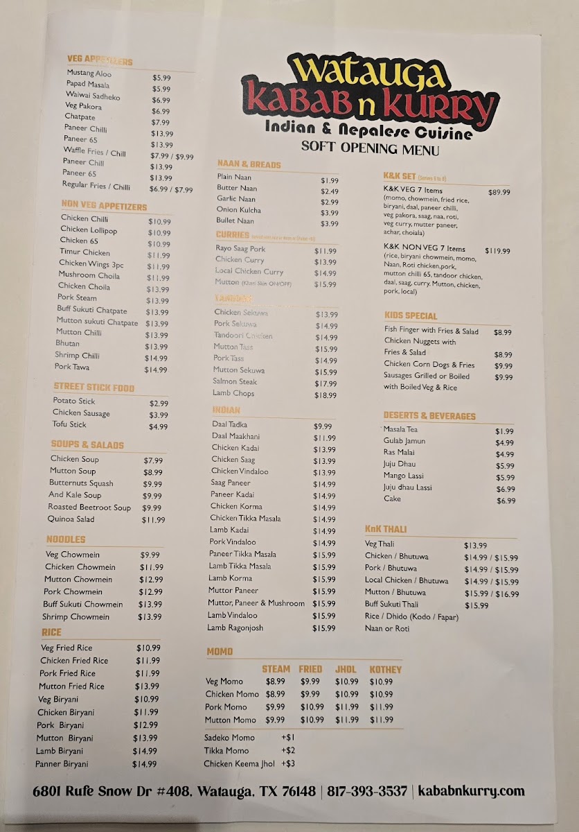 Welcome to Watauga Kabab N Kurry, a vibrant restaurant nestled in Watauga, TX. This culinary gem boasts an extensive menu that tantalizes the taste buds, celebrating the rich flavors of Nepali and Indian cuisine.